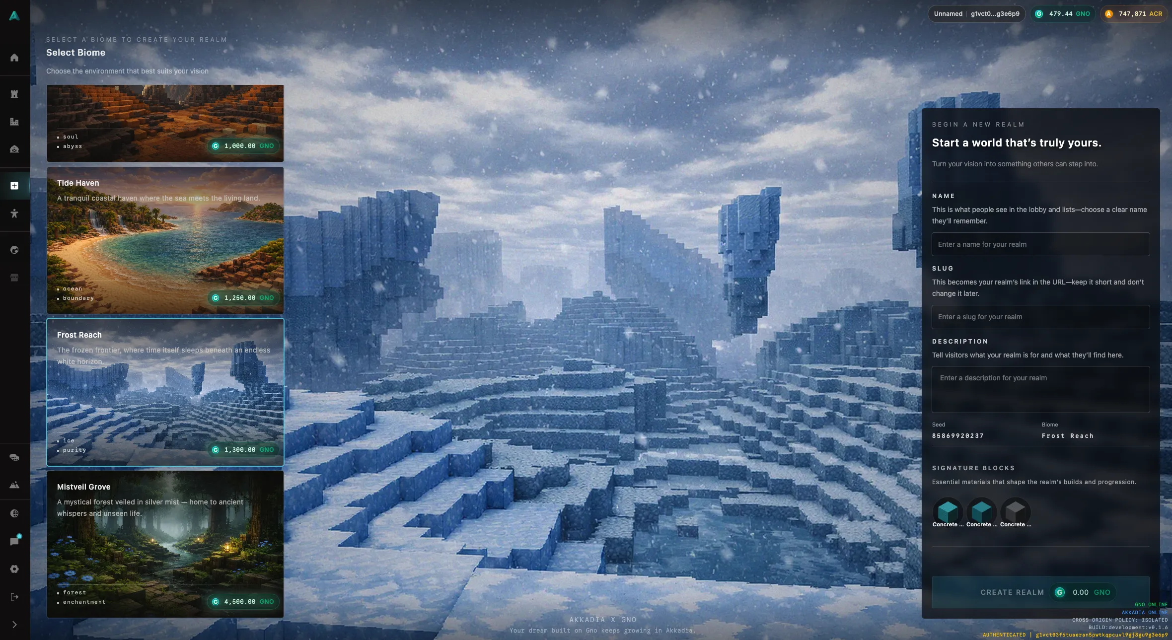 A Realm (World) is not just a space to move through. It is a place where players build structures, shape spaces, and create results that remain over time. Changes made within a Realm (World) become part of that world’s ongoing state and persist for future visitors to encounter.